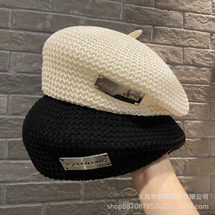 Small fragrant wind show face small beret woman new autumn knit hollow painter hat fashion all casual newspaper boy hat