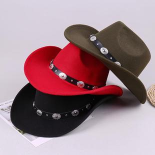 Metal mark detachable decoration with woolen flat top hat Spring and autumn gentleman large eaves shade jazz hat foreign trade new